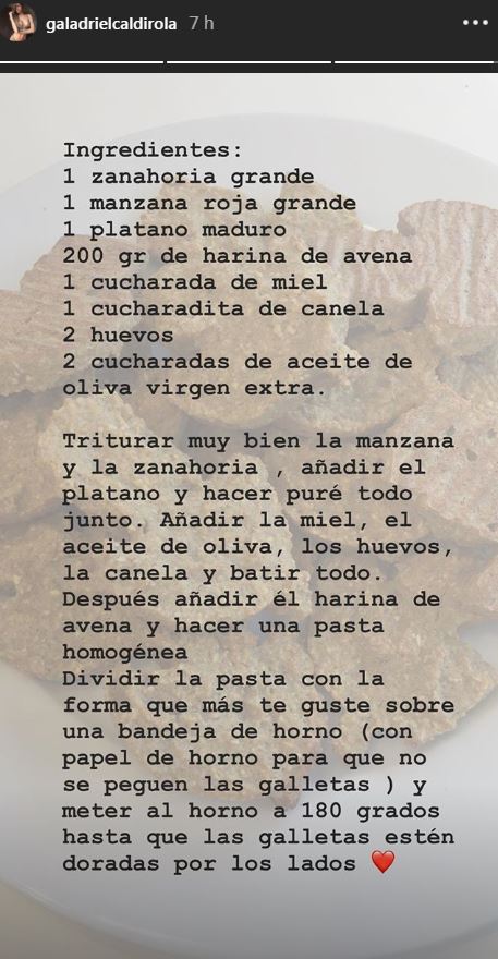 Y si bien normalmente nos muestra registros y fotos de su pequeña o declaraciones de amor al seleccionado nacional, esta vez Gala sorprendió con la receta de unas deliciosas galletas saludables.