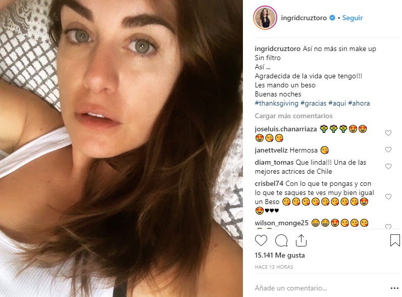 Y este jueves, Ingrid fue aplaudida en su cuenta de Instagram por una publicación. En ella, aparece sin maquillaje y sin agregar ningún filtro a la foto.