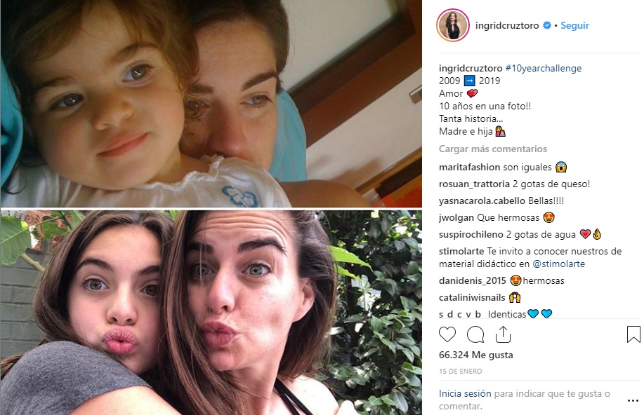 Especialmente ahora que ambas protagonizan una publicidad para un supermercado. Sin embargo, fue hace un par de días, donde la actriz compartió en su cuenta de Instagram, con el llamado "10 years Challange" con una foto de su hija del recuerdo y otra en la actualidad, donde se revela el gran parecido que hay entre ambas.