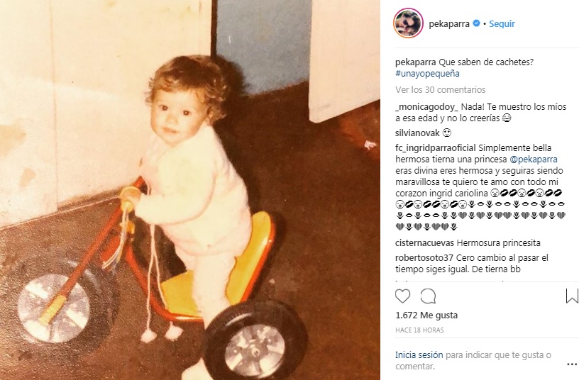 La actriz compartió una postal de sí misma cuando era una pequeña niña, mientras jugaba con un triciclo. "Simplemente bella hermosa", "saludos Peka, esta muy tierna la foto", "Qué nena tan bonita eras Pekita", "Cero cambio al pasar el tiempo sigues igual", fueron algunos de los comentarios que recibió.