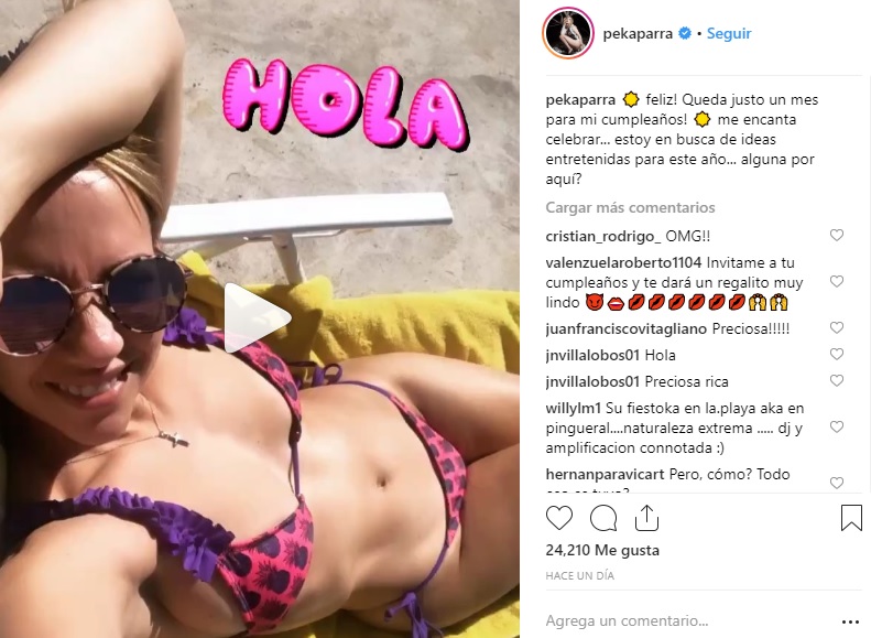 Y Parra, de 34 años, lo hizo con una selfie, donde se muestra bronceándose en la playa, mostrando su tonificada figura. "¡Feliz! ¡Queda justo un mes para mi cumpleaños! Me encanta celebrar… estoy en busca de ideas entretenidas para este año… ¿alguna por aquí?”, comentó en la publicación.