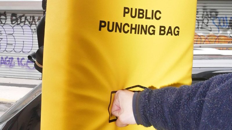 La idea es que cualquiera que necesite descargar su enojo o estrés lo haga en estos sacos, en vez de hacerlo con la persona que tiene al lado o con elementos encontrados en la calle.