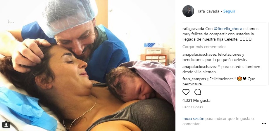En la madrugada de este lunes, a las 2:46 am, nació la hija entre el periodista y conductor de "CQC" Rafael Cavada y su mujer, la nutricionista uruguaya Fiorella Choca.