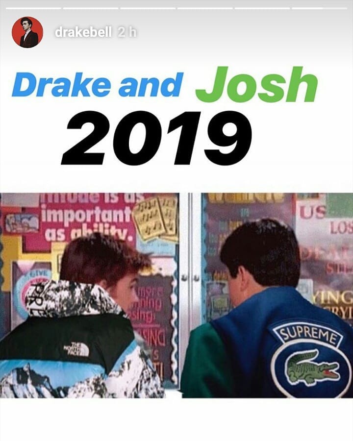 Este 2019 la popular serie juvenil de Nickelodeon, "Drake y Josh", estará de vuelta. Así lo confirmó el mismo Drake Bell a través de su cuenta de Instagram con una imagen del programa donde añade "Drake y Josh 2019".