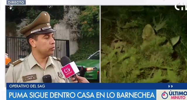 Desde la noche de este miércoles que se ha desplegado un amplio operativo en el sector de El Arrayán, en Lo Barnechea debido a la presencia de un puma atrapado en un pino de un antejardín de una casa.