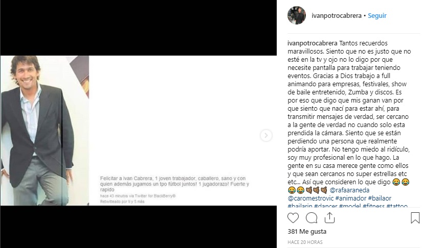 En medio de los retornos de programas juveniles de antaño, Iván Cabrera manifestó sus ganas de volver a la televisión a través de un sincero mensaje.