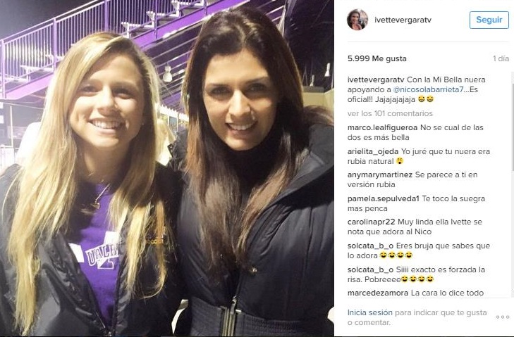 “Con mi bella nuera apoyando a @nicosolabarrieta7…Es oficial!! Jajajajajaja”, escribió Ivette.
