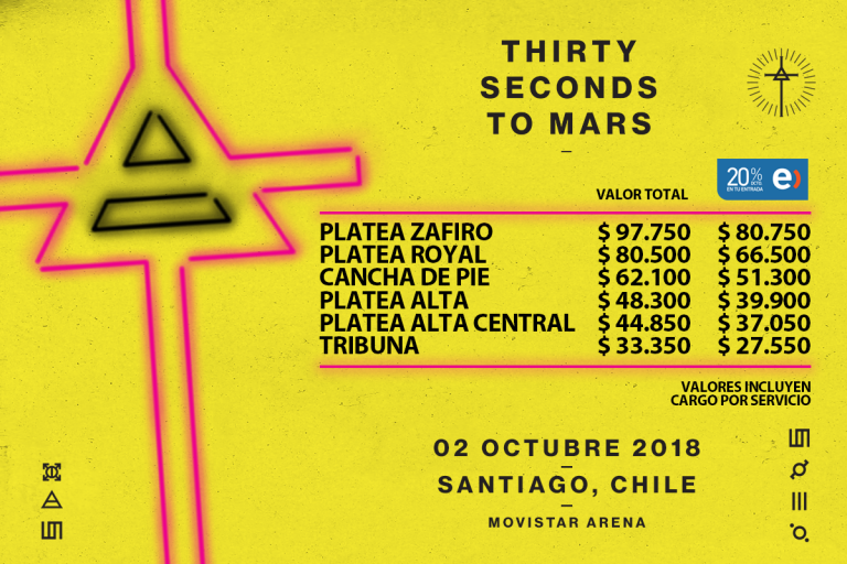 Tal como lo anunció esta mañana DG Medios, 30 Seconds to Mars regresará a Chile para presentarse el próximo 2 de octubre en Movistar Arena.