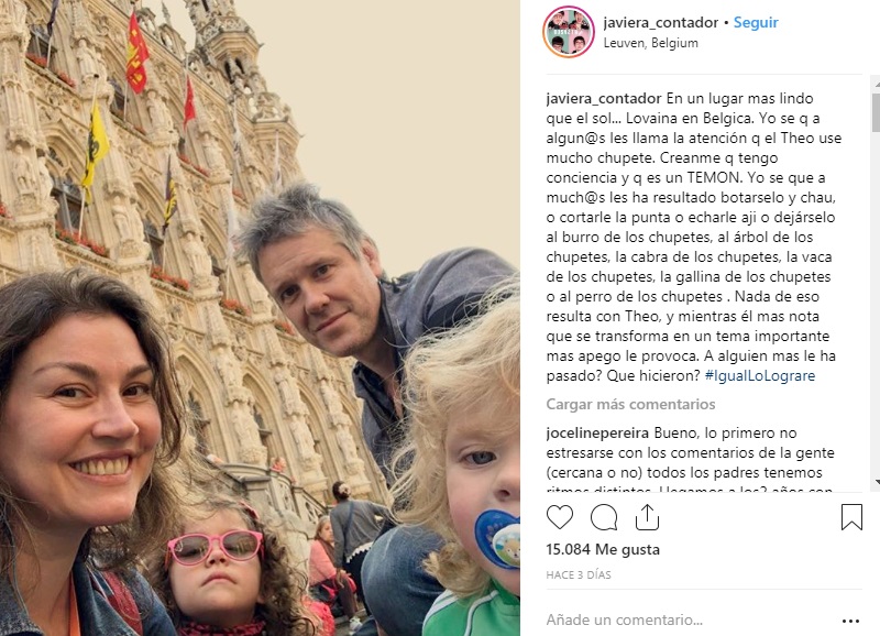 “Yo sé que a algunos les llama la atención que el Theo use mucho chupete. Créanme que tengo conciencia y que es un temón”, decía su publicación.