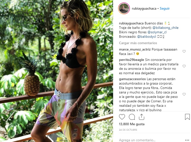 Y esta vez en algunas de sus fotos ha recibido varios comentarios negativos por algunos cibernautas. "Muy flaca. No baje tanto", "Pucha, querida, pero tan tan flaquita", "un palo de flaca",“sin conocerla, por favor llévenla a un médico para tratarla de su anorexia o bulimia. Por favor, no es normal esa delgadez”, son algunos de los comentarios que han recibido sus publicaciones.