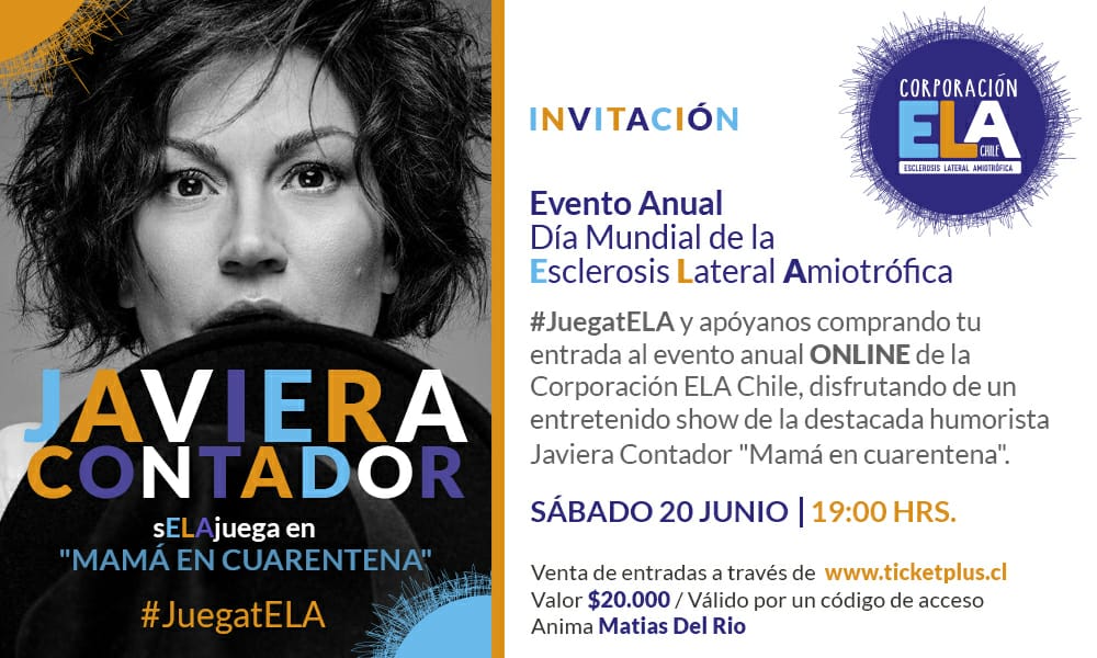 Javiera Contador será la destacada artista con que la Corporación ELA Chile sorprenderá este 2020 en su evento anual, para conmemorar el día internacional de la enfermedad. “Mamá en Cuarentena”, se llama el show que presentará la humorista en el evento que se realizará el 20 de junio y será animado por el periodista Matías del Río.