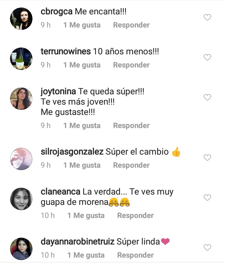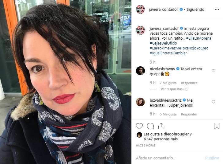 'En esta pega a veces toca cambiar. Ando de morena ahora. Por un ratito', escribió Javiera para acompañar la imagen con que se llenó de halagos de parte de sus seguidores en la red social.