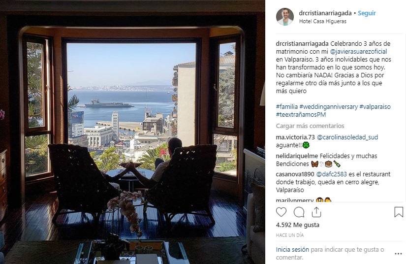 "Celebrando 3 años de matrimonio con mi @javierasuarezoficial en Valparaíso. Tres años inolvidables que nos han transformado en lo que somos hoy. No cambiaría NADA! Gracias a Dios por regalarme otro día más junto a los que más quiero", escribió el doctor para acompañar la romántica postal.
