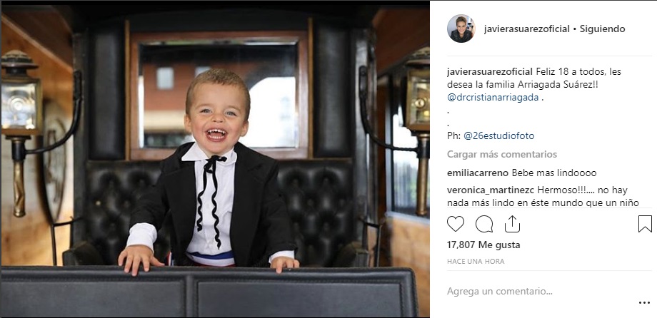En el marco de las Fiestas Patrias, Javiera Suárez compartió una bella foto de su hijo vestido de huasito.