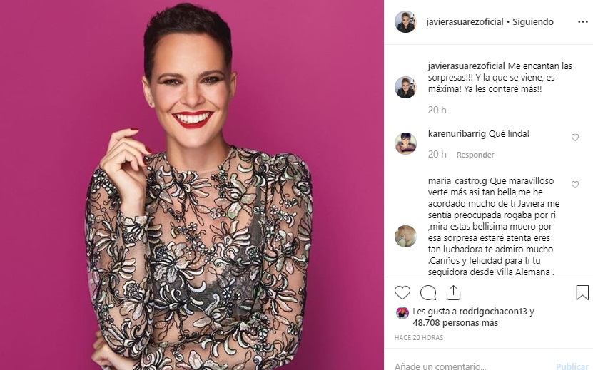 Javiera Suárez está atravesando por un buen momento y sin dolores, según declaró al diario "Las últimas noticias".