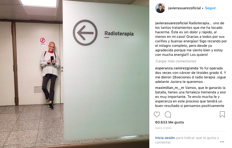 "He tenido la bendición de que la mayoría de las personas que día a día se me acercan o escriben me llenan de amor y energía sanadora". De esta forma parte el mensaje, que Javier Suárez envió en redes sociales a quienes la critican por su enfermedad.