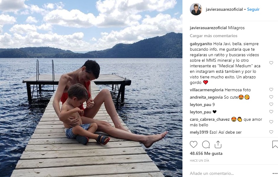 Durante este sábado Javiera incluso compartió dos fotos disfrutando del agua en traje de baño, y en una aparece con su hijos de dos años, Pedro Milagros.