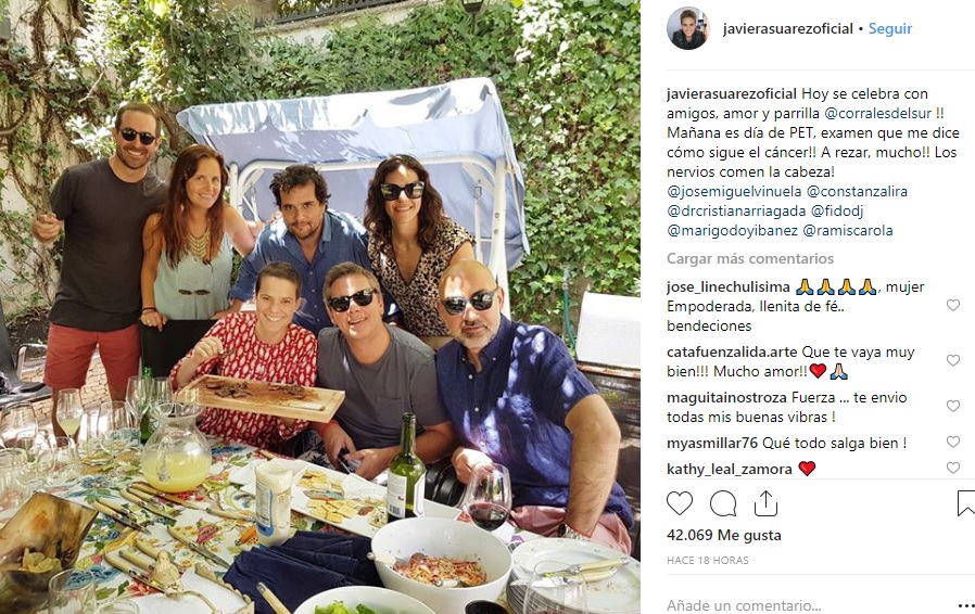 “Mañana es día de PET, examen que me dice cómo sigue el cáncer. A rezar, mucho! Los nervios comen la cabeza!”, fue el mensaje que compartió con una postal donde se encuentran con sus más cercanos, entre ellos estaban José Miguel Viñuela y la actual animadora del Festival de Viña, María Luisa Godoy.