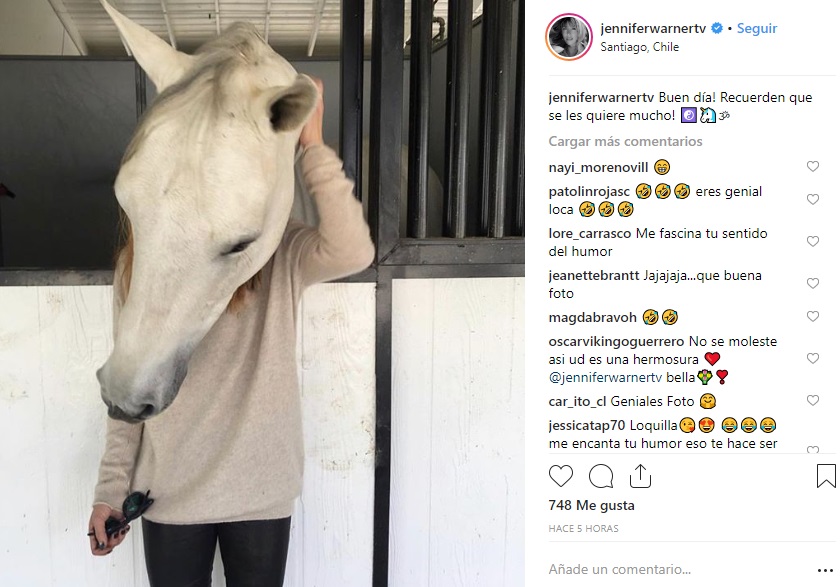 La foto alude a las eternas bromas que dicen que tiene "cara de cabalo". Por eso mismo, la comunicadora compartió una imagen donde aparece ella con una verdadera "cara de caballo". Esto se logró con ilusión óptica, donde la cabeza del animal se usa para esconder la de la persona, dejando a la vista solo su cuerpo.