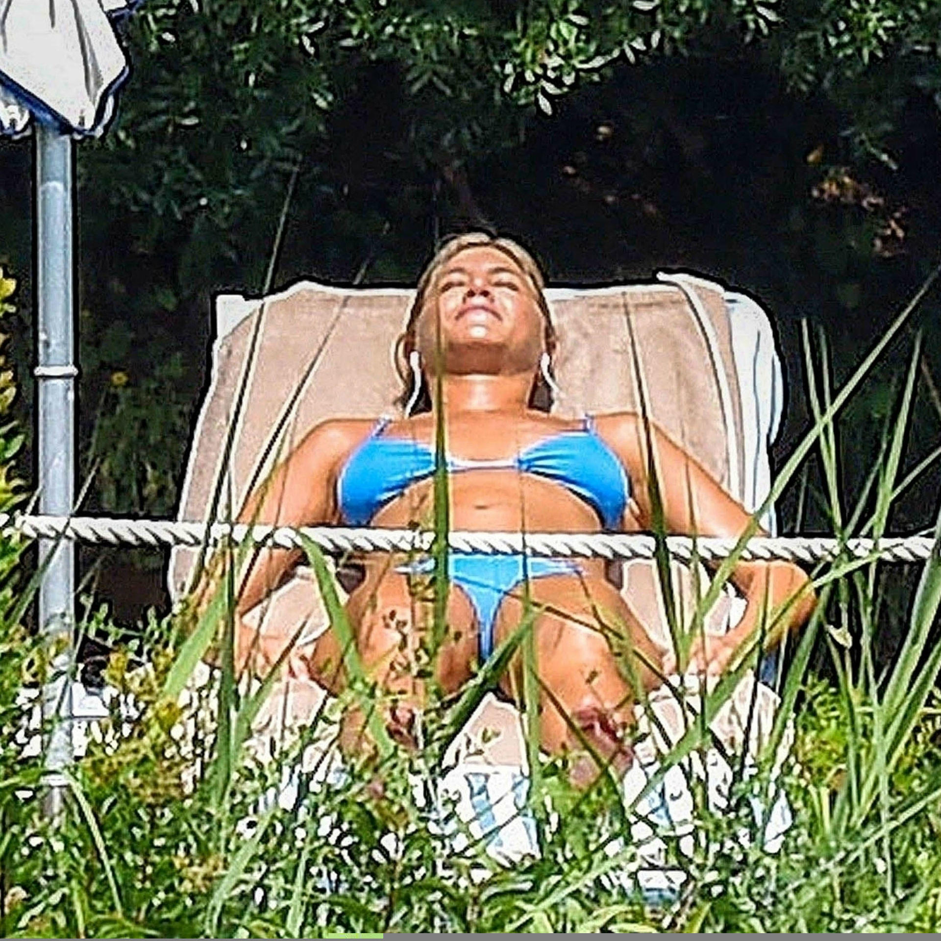 Sin embargo, la actriz estadounidense aprovechó su día libre para broncearse y disfrutar de la piscina en un balneario turístico.