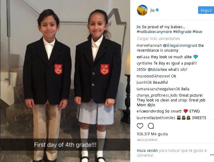 La cantante y actriz Jennifer López está orgullosa de sus mellizos, Max y Emme, quienes tuvieron su primer día de clases del cuarto grado en un prestigioso colegio de Los Ángeles, California.