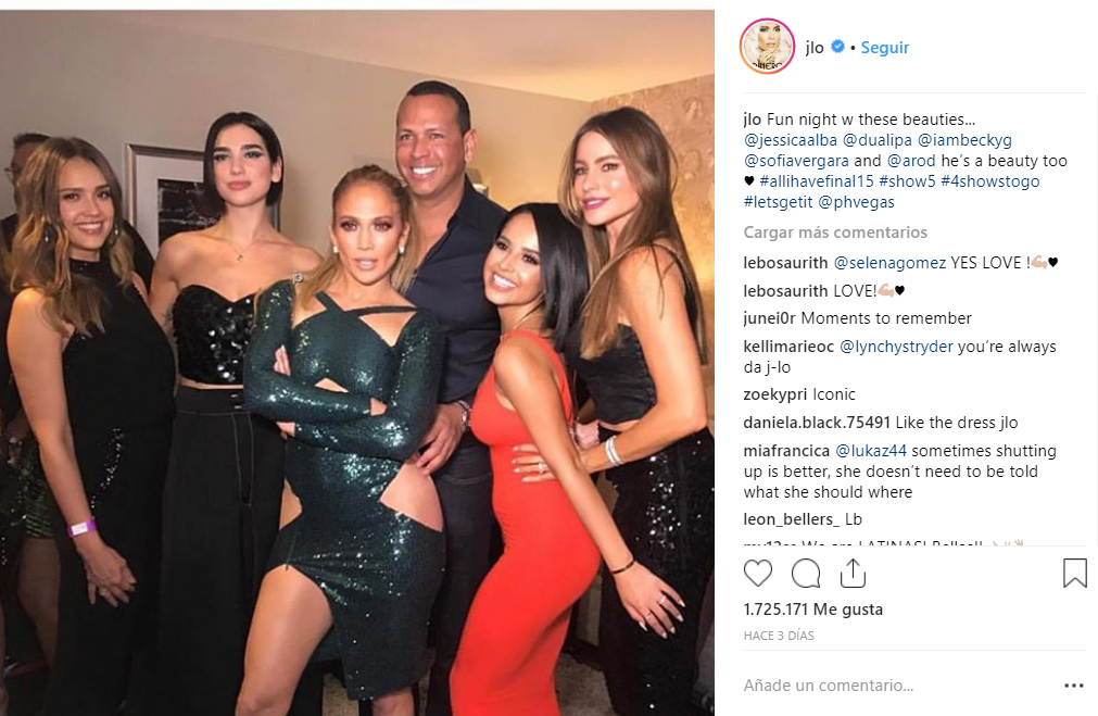 Luego de su show, la artista dio a conocer que se encontraba en compañía de varias de sus famosas compañeras, entre las que se encuentran Dua Lipa, Jessica Alba, Sofía Vergara y Becky G con quienes compartió una fotografía a través de su Instagram.