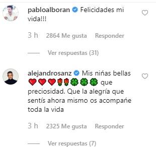 Igualmente otros conocidos conocidos personajes le dejaron sus mensajes de felicitaciones, como Pablo Alborán, Alejandro Sanz, Ricardo Montaner y Laura Pausini.