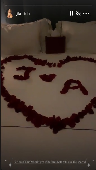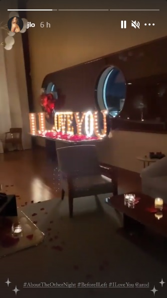 Y es que la pareja tuvo una soñada celebración de San Valentín, de la cual JLo compartió detalles en sus redes sociales. Una habitación con un gran letrero con luces que decía "te amo", una cama llena de pétalos de rosa que formaban sus iniciales, globos y bello arreglos florales fueron parte de la sorpresa.