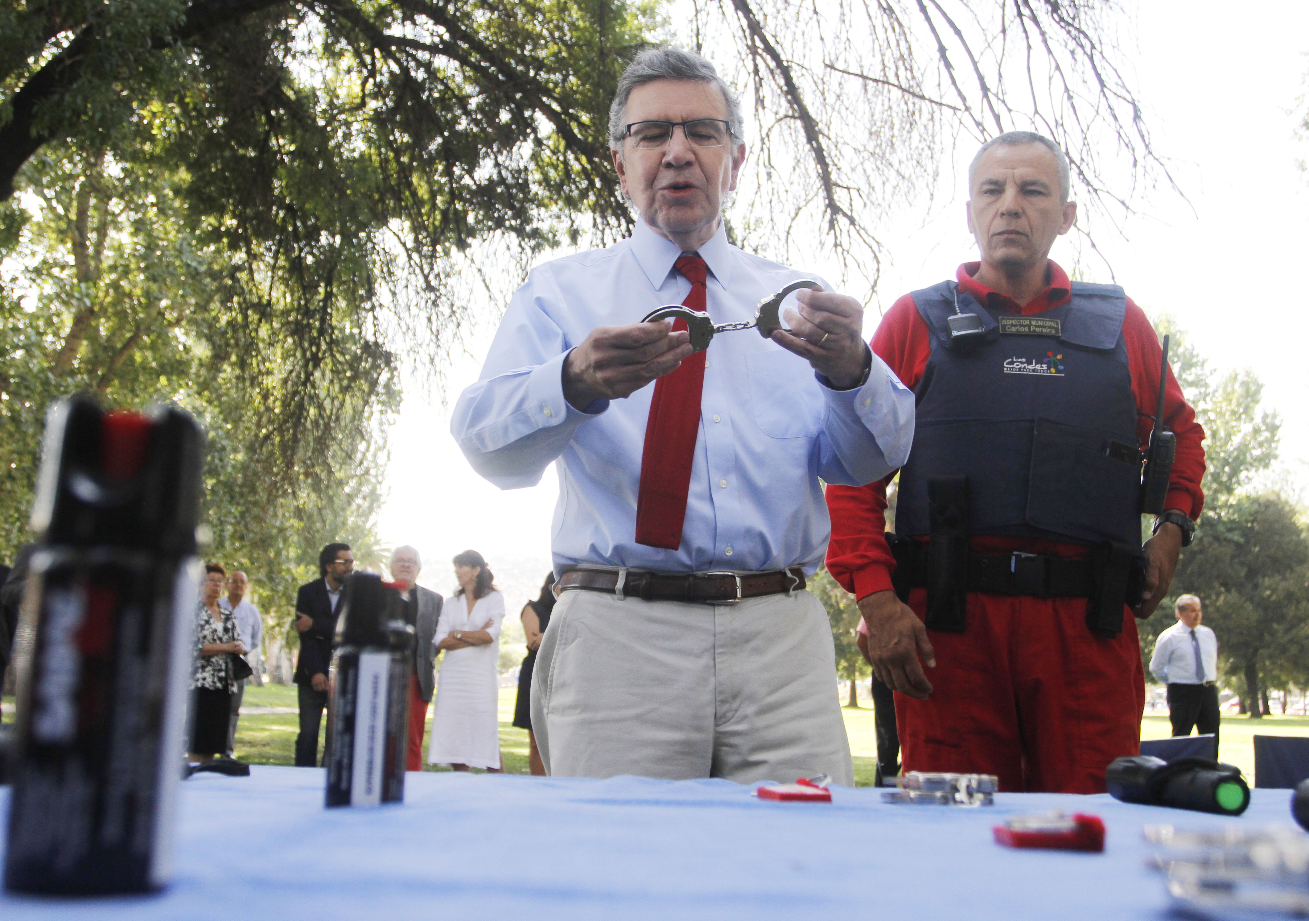 El Parque Los Dominicos fue el lugar elegido por Joaquín Lavín, alcalde de Las Condes, para dotar a los inspectores municipales de elementos de seguridad.