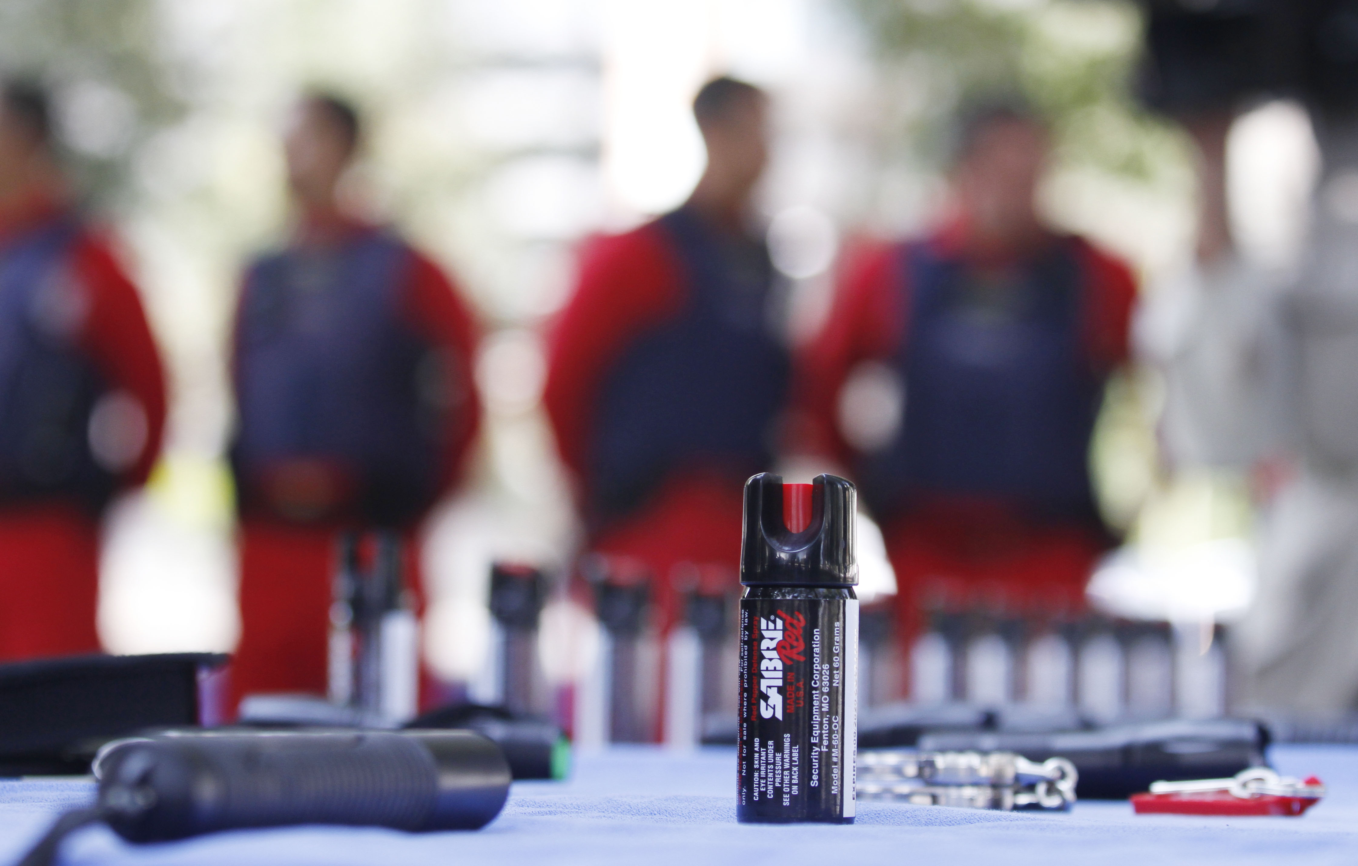 En la ceremonia se hizo entrega a los funcionarios de artículos como gas pimienta, esposas, chalecos antibalas y bastones retráctiles.