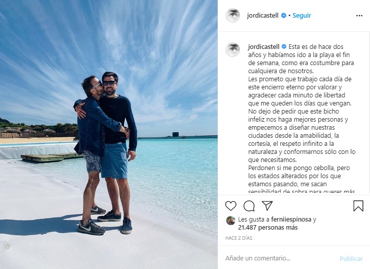 Jordi Castell también ha tenido sus momentos de "descarga" en medio de esta pandemia y aprovechó sus redes sociales para expresar sus sentimientos, pero de una forma romántica y muy conmovedora. El destacado fotógrafo utilizó su cuenta de Instagram para escribir un mensaje dedicado a su pareja