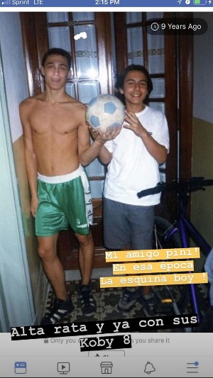 "Mi amigo Pini! En esa época la esquina boy! Alta rata y ya con sus Koby", fue el mensaje que escribió sobre la captura donde se le va bastante más delgado, sin polera y con unos shorts verdes junto a un amigo de la infancia.