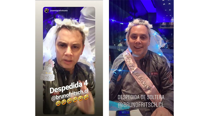 El festejo fue financiado por Bruno Fritsch, tuvo a Viñuela celebrando en un restaurant con un grupo de famosillos. El animador subió algunas historias a Instagram donde aparece con un velo de novia. +