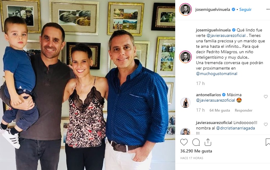 En la publicación, el conductor de 'Mucho gusto' escribió: “Qué lindo fue verte @javierasuarezoficial . Tienes una familia preciosa y un marido que te ama hasta el infinito… Para qué decir Pedrito Milagros, un niño inteligentísimo y muy dulce..".