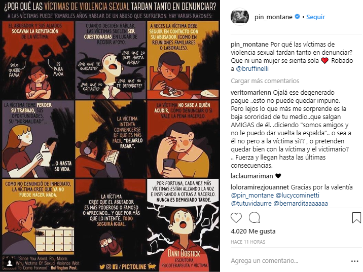 Luego la actriz subió a Instagram una imagen donde se explica el ¿por qué las víctimas de violencia sexual se demoran tanto tiempo en denunciar?