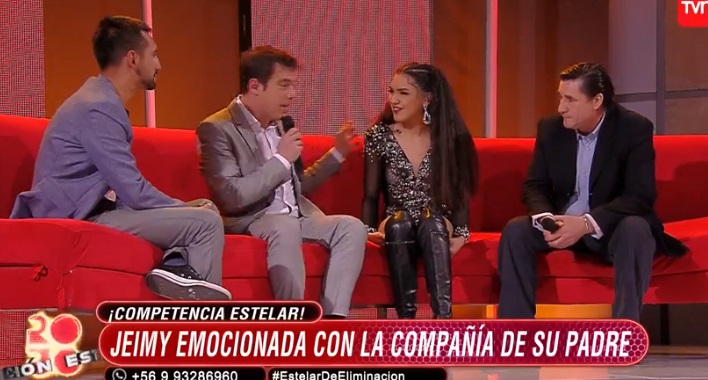 Entre toda las presentaciones en el programa, una de las mas comentadas por los tuiteros que veían Rojo era la de Jeimy Espinoza que tuvo a invitados especiales, su padre Miguel Espinoza y su abuelo Gabriel Espinoza que viajaron desde Tomé para apoyarla en esta etapa.
