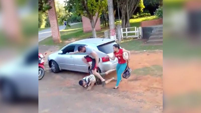 En este instante apareció su pareja, totalmente descontrolada. Y no encontró nada mejor, que golpear a quien creía que era el amante de su novia. Pero... ¡Era su papá!.