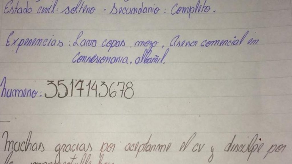 Hace unos días una emotiva carta se tomó las redes sociales. Se trata del currículum a mano que escribió Carlos Duarte, un joven argentino de 21 años que recorrió a pie toda su ciudad en busca de trabajo.