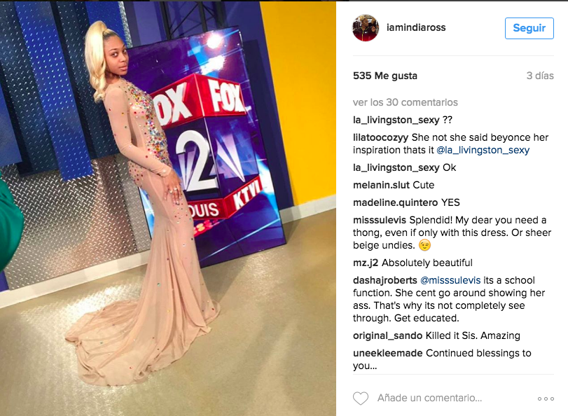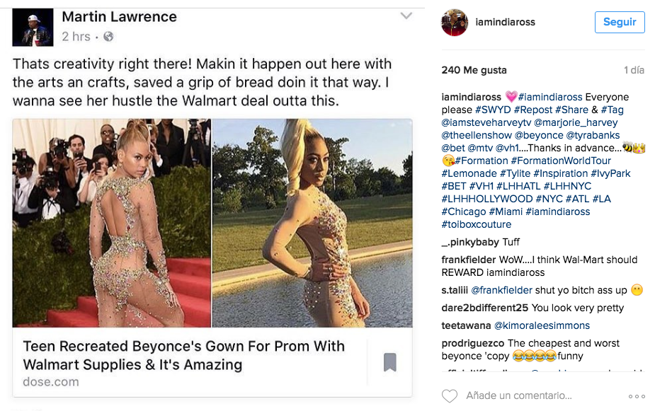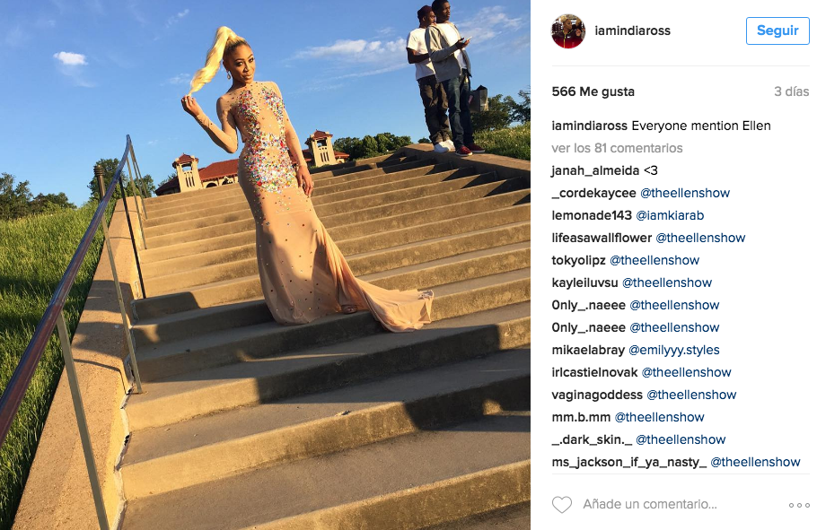 Esta vez fue el caso de una joven de 18 años llamada Indiana Ross, de EE.UU., que usó el mismo vestido que lució Beyoncé en la Gala MET 2015.