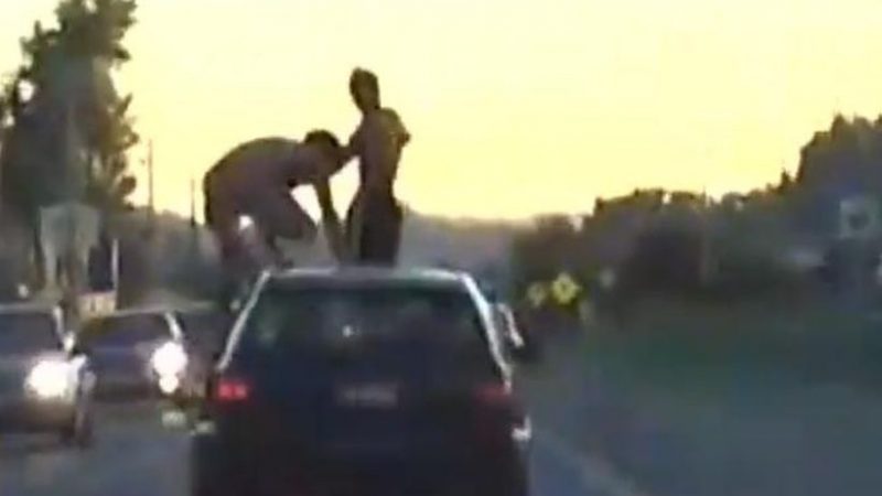 En viral se ha convertido el video que muestra cómo dos jóvenes, bailan arriba de un auto en movimiento, en el sector del Laja.