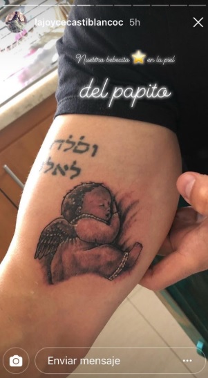 No sólo Joyce homenajeó a su "bebé estrella", sino que también el arquero de Deportes Antofagasta. Para eso, Garcés se realizó un emotivo tatuaje en su honor donde se ve la imagen de un bebé con alas de ángel en su brazo, imágen que fue compartida por su pareja a través de sus historias de Instagram.