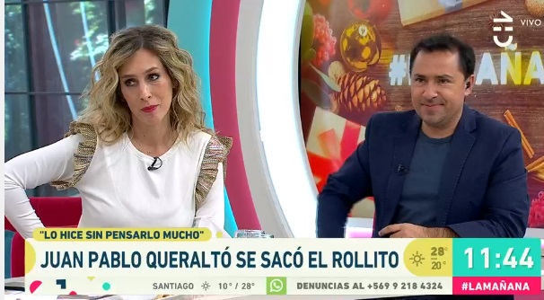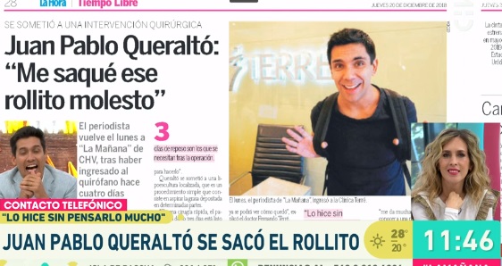 Ante una entrevista con el diario La Hora, Juan Pablo Queraltó fue contactado por teléfono por sus compañeros de panel en "La mañana" para saber más detalles sobre el procedimiento quirúrgico que lo hizo ir al quirófano.