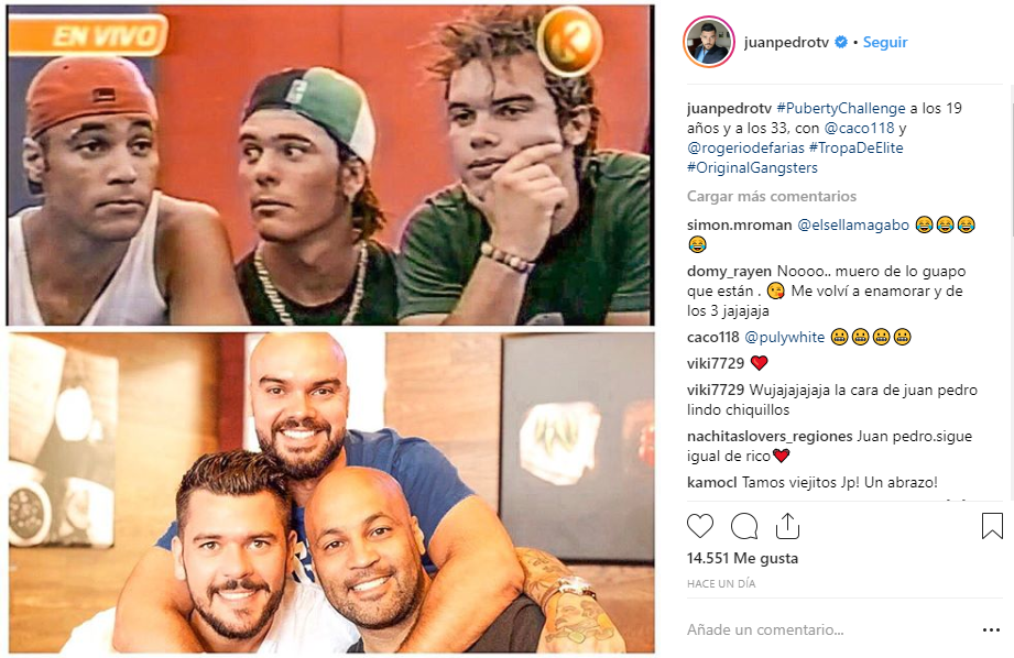 "#PubertyChallenge a los 19 años y a los 33, con @caco118 y @rogeriodefarias #TropaDeElite #OriginalGangsters" fue lo que escribió en la descripción de la fotografía. La imagen tiene más de 14 mil me gusta y cientos de comentarios.