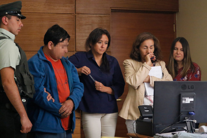 Durante la audiencia de formalización, Bahamondes tuvo que ver el video, junto a la fiscal y la abogada del caso, que estaban a un paso del acusado.