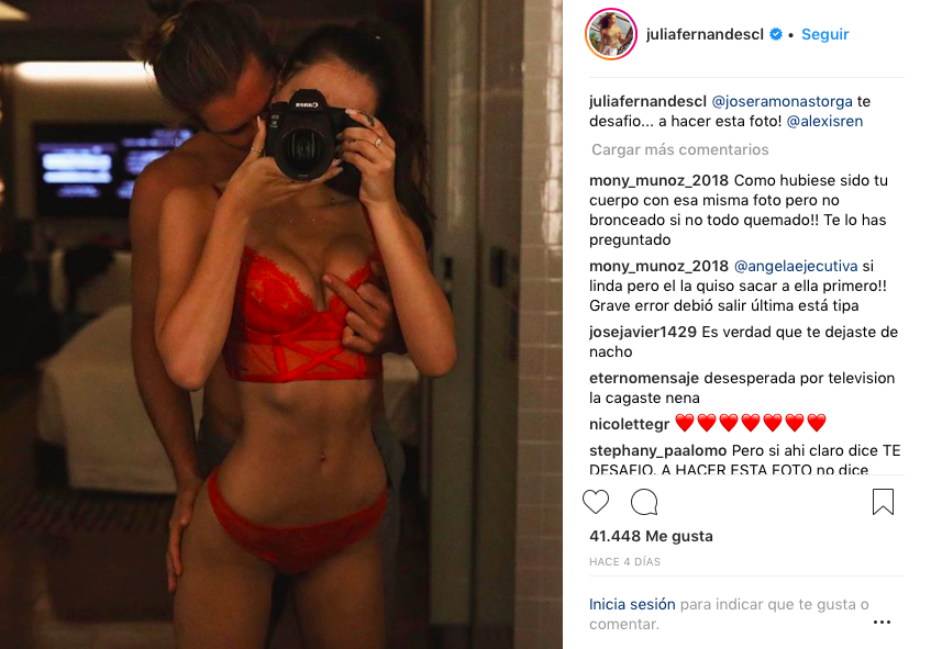 Sin embargo, según revela el sitio web AR13, la foto no corresponde a la modelo ni a su pololo. El mismo medio, informa que fue la misma Julia quien a través de Instagram se encargó de negar esta información asegurando que retó a su novio a realizar una imagen que en realidad pertenece a la youtuber Alexis Ren de origen estadounidense que tiene cerca de 13 millones de seguidores.