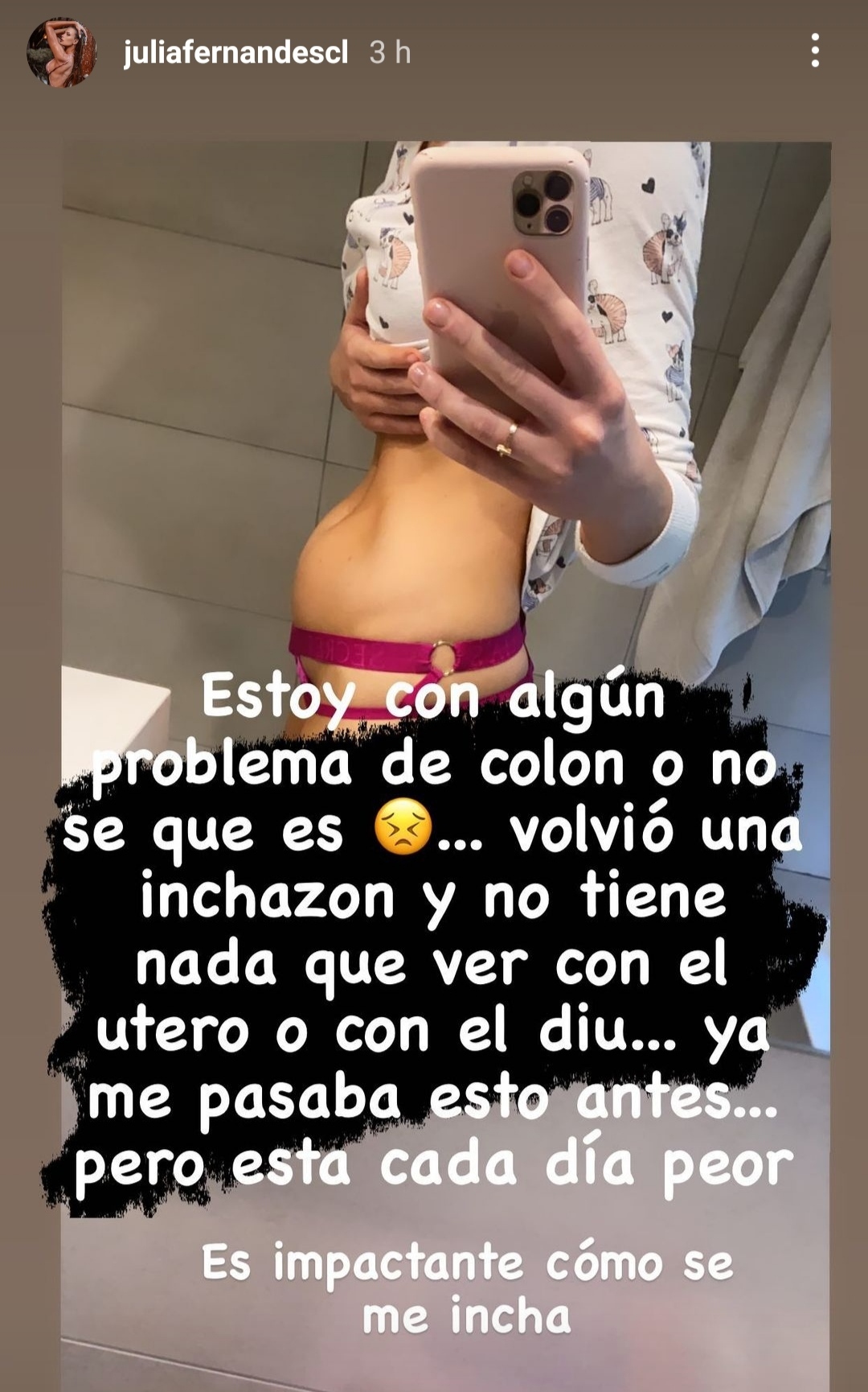 Y luego, a través de un video, Julia Fernandes dio detalles de lo que le dijo el doctor y mostró cómo luce su estómago inflamado.