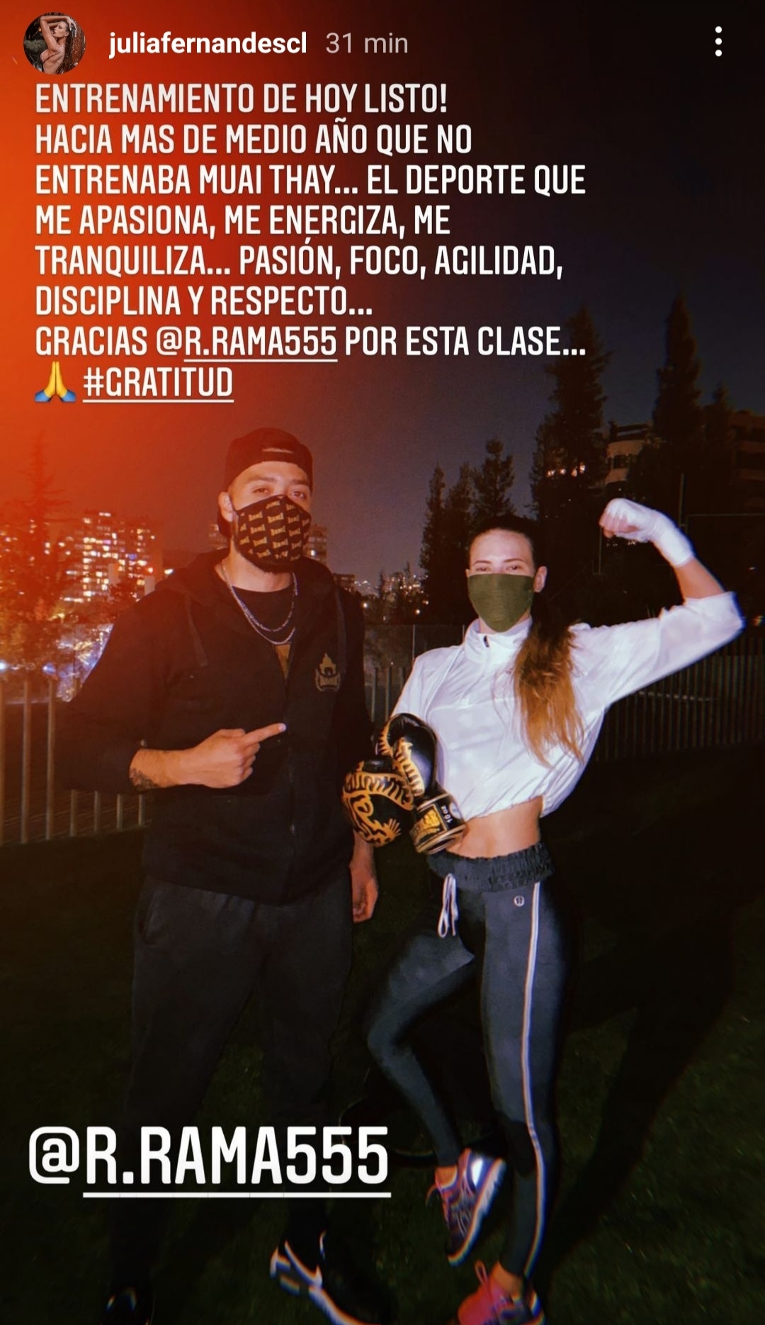 Pero con hinchazón y todo, como buena paciente, Julia Fernandes le hizo caso a su doctor y bajó a entrenar una clase de Muay Thai (boxeo tailandés).
