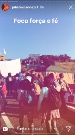 Fueron 27 kilómetros los que recorrió la brasileña en compañía a su suegra, registro que compartió en redes sociales. Una vez en el templo, la ex chica reality agradeció "al señor" y tomó fotografías para dar cuenta de la experiencia.