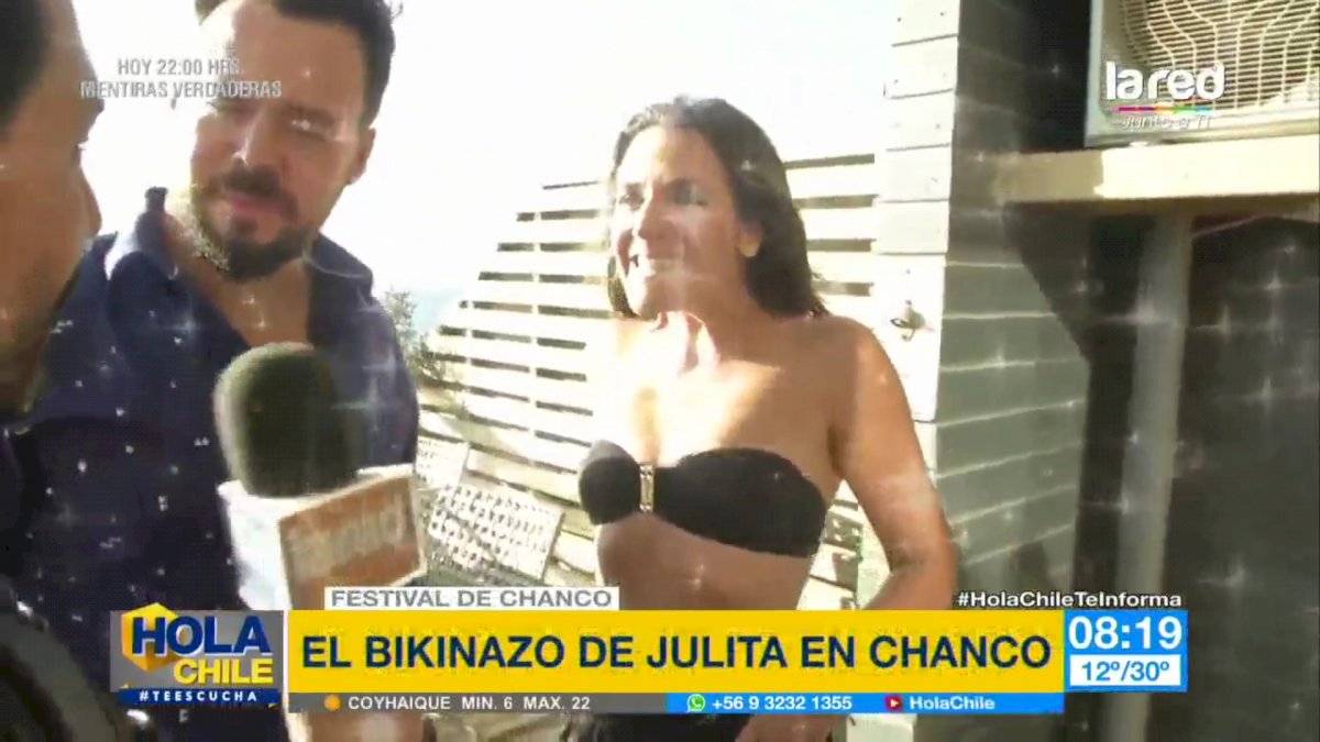En esa línea, los panelistas del programa hicieron un alto cuando estaba revisando una entrevista a Julia Vial, quien aparecía en las imágenes en bikini, luciendo su esbelta figura.
