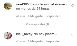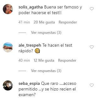 En su publicación contó que al ingresar le habrían hecho un examen preventivo, para saber si tendría o no Covid-19.